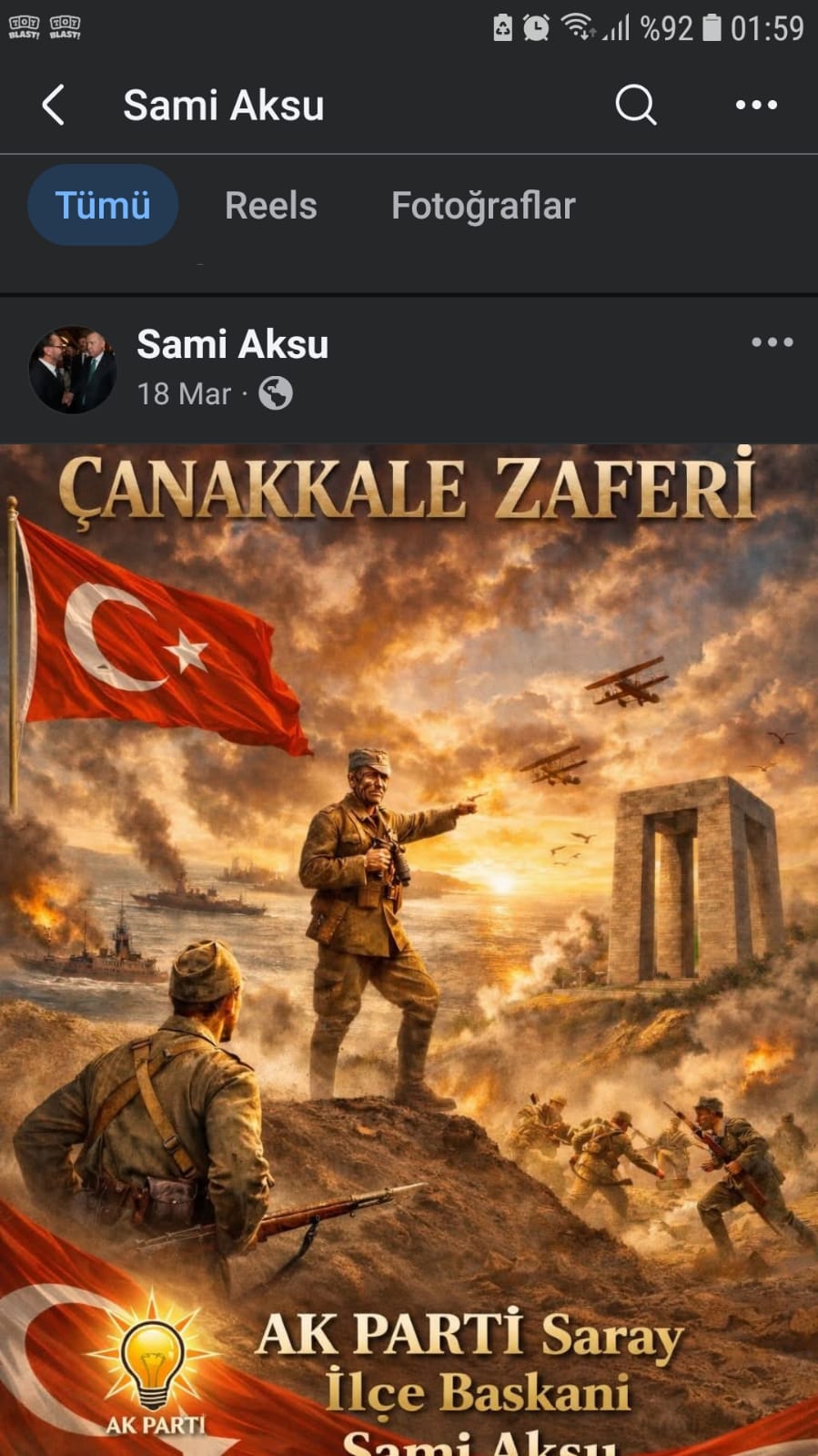 18 MART TÜRK MİLLETİNİN ŞANLI TARİHİ ZAFER DESTANLARINDAN BİRİDİR.KUTLAMA TÖRENİNE KATILMAYIP YÖNETİM KURULU ÜYENİZİ PARTİYİ…